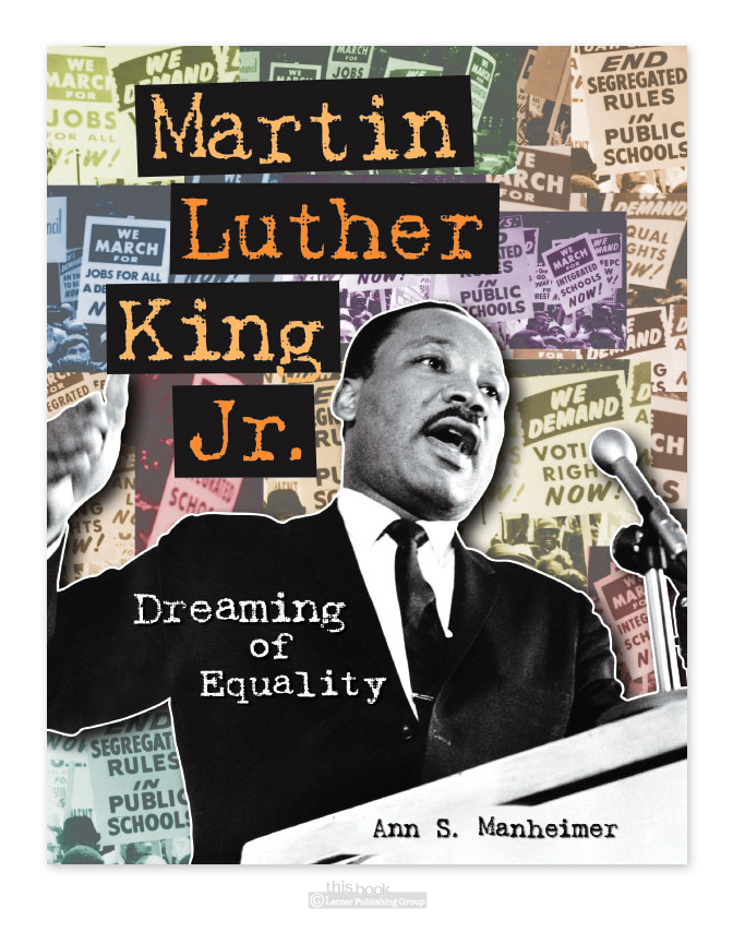 Here is a book cover for a junior high to early high school level biography on Martin Luther King Jr. Not sure you could tell who the book was about based on the cover image and the title. This can be the way book cover design in the children’s market goes… obvious imagery and titling, but with interesting treatment of. I did this cover quite a few years ago- it remains one of my favorites.