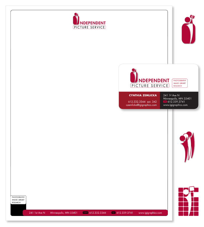 I work for a children’s book publisher, and therefor design a lot of books. This is good, but means it’s also really nice when something else comes along in the workflow that lets me step outside of bookdesignland for a while. Here’s one of those projects: logo, letterhead, and business cards for Independent Picture Service, our in-house photo agency. The three different icons are to use for the three services IPS provides- custom photography, stock photos, and photo research.