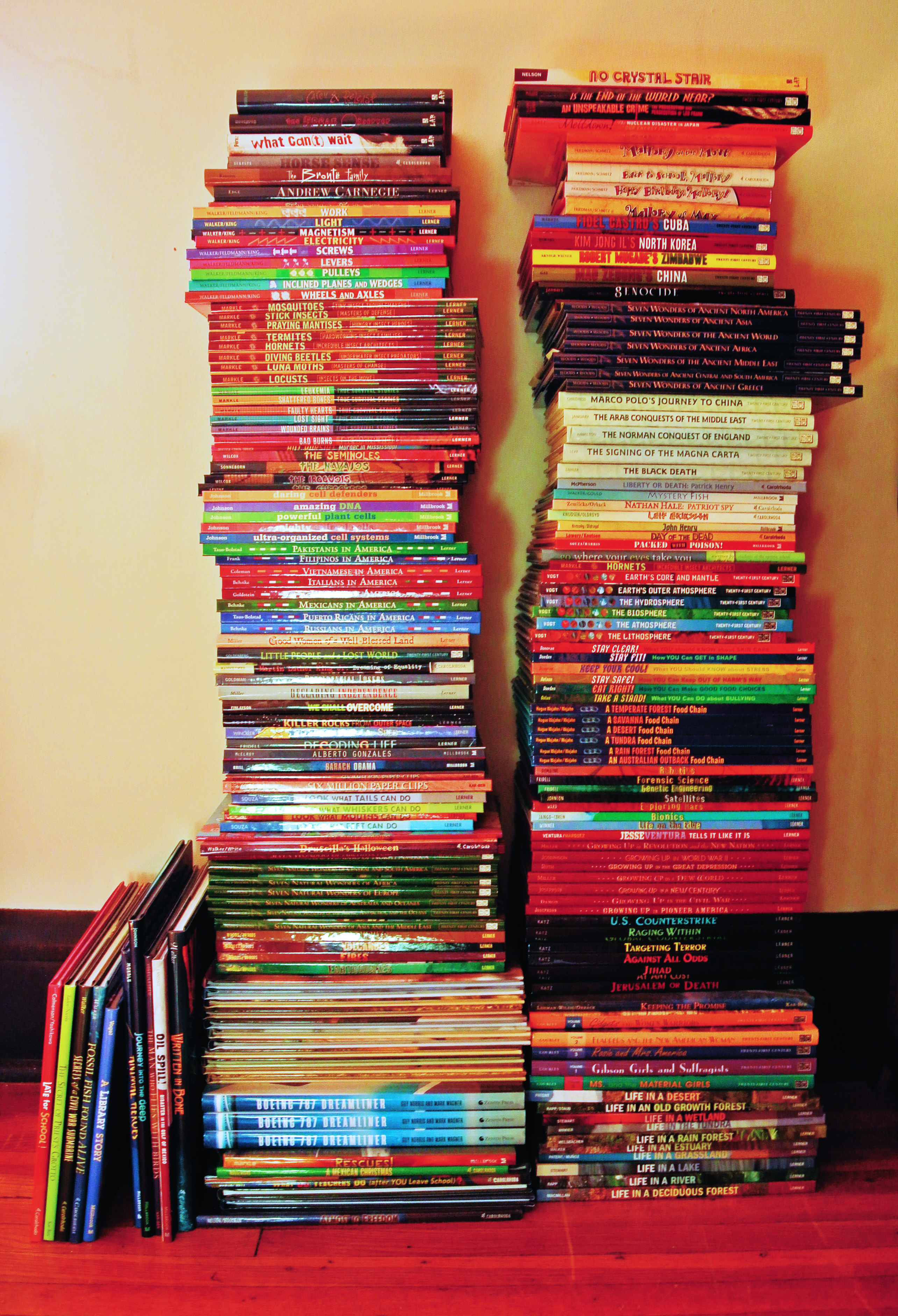 I’ve recently been working my way through the a couple of stacks of books I’ve designed, with the goal of photographing, archiving, and then donating the actual book. The stacks look like this right now, and this is probably 1/6th of the books I’ve worked on over the years: